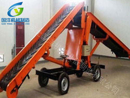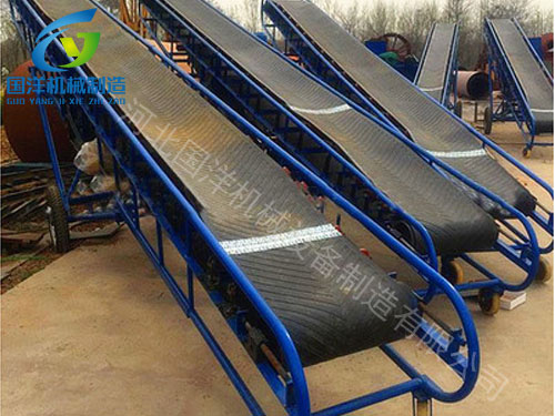 移動式輸送機分為帶式移動輸送機和斗式移動輸送機,輸送機底部安裝有萬向輪,可以根據(jù)物料的堆放位置隨意移動,移動式帶式輸送機在輸送傾斜角度較小的環(huán)境下使用,移動式斗式輸送機在輸送傾斜角度較大的環(huán)境下使用,移動斗式輸送機,輸送帶上安裝有小型斗子,在輸送傾角較大時物料不會出現(xiàn)回落現(xiàn)象。