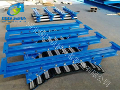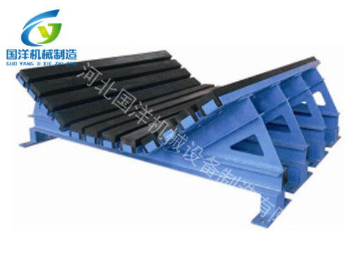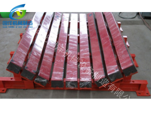 緩沖床主要用于替代緩沖托輥,緩沖床由緩沖條組成,而緩沖條主要應(yīng)用優(yōu)良的特種橡膠層充分吸收了物料下落時(shí)的沖擊力,降低了物料下落時(shí)對(duì)輸送帶的沖擊,了落料點(diǎn)的受力狀況。